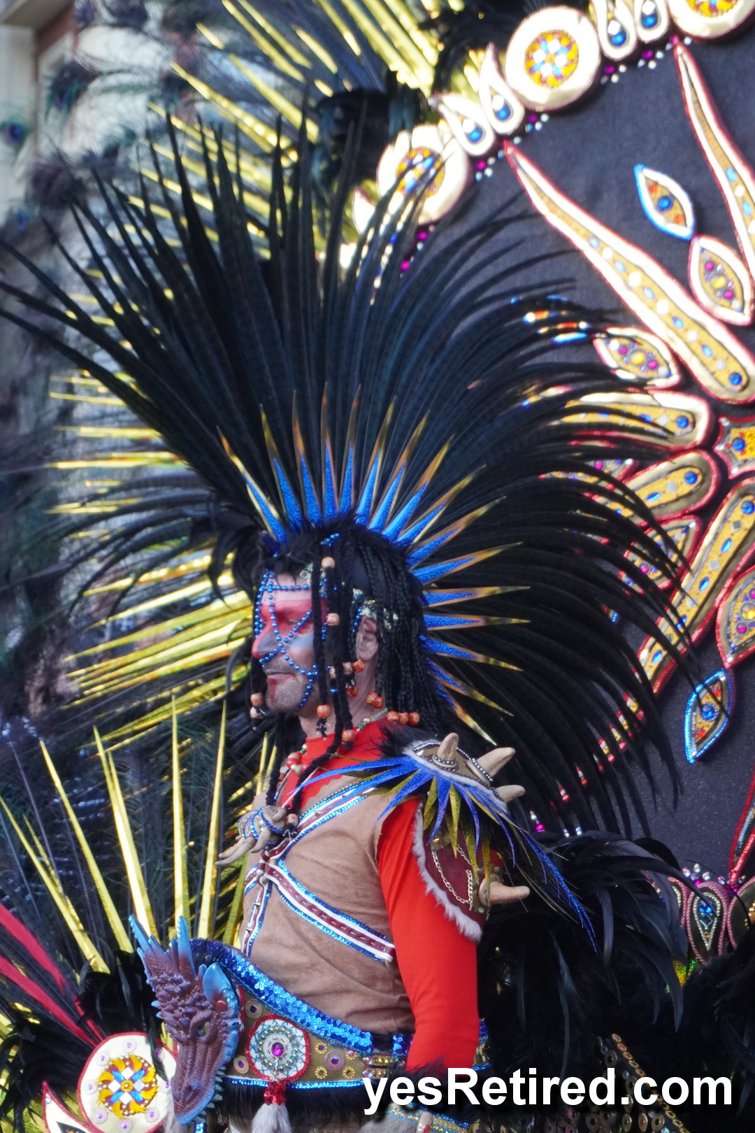 But the origin of the feathered look is not Spanish — it is an imported Latin American style layered onto Spain’s much older carnival tradition.
