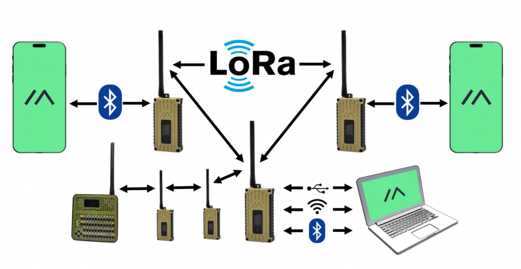 Mesh radios extend their range by relaying your message from one device to another in a series of automatic “hops.” Each unit typically covers about 5 km, so as long as there are enough users nearby, your message can travel vast distances across the network.