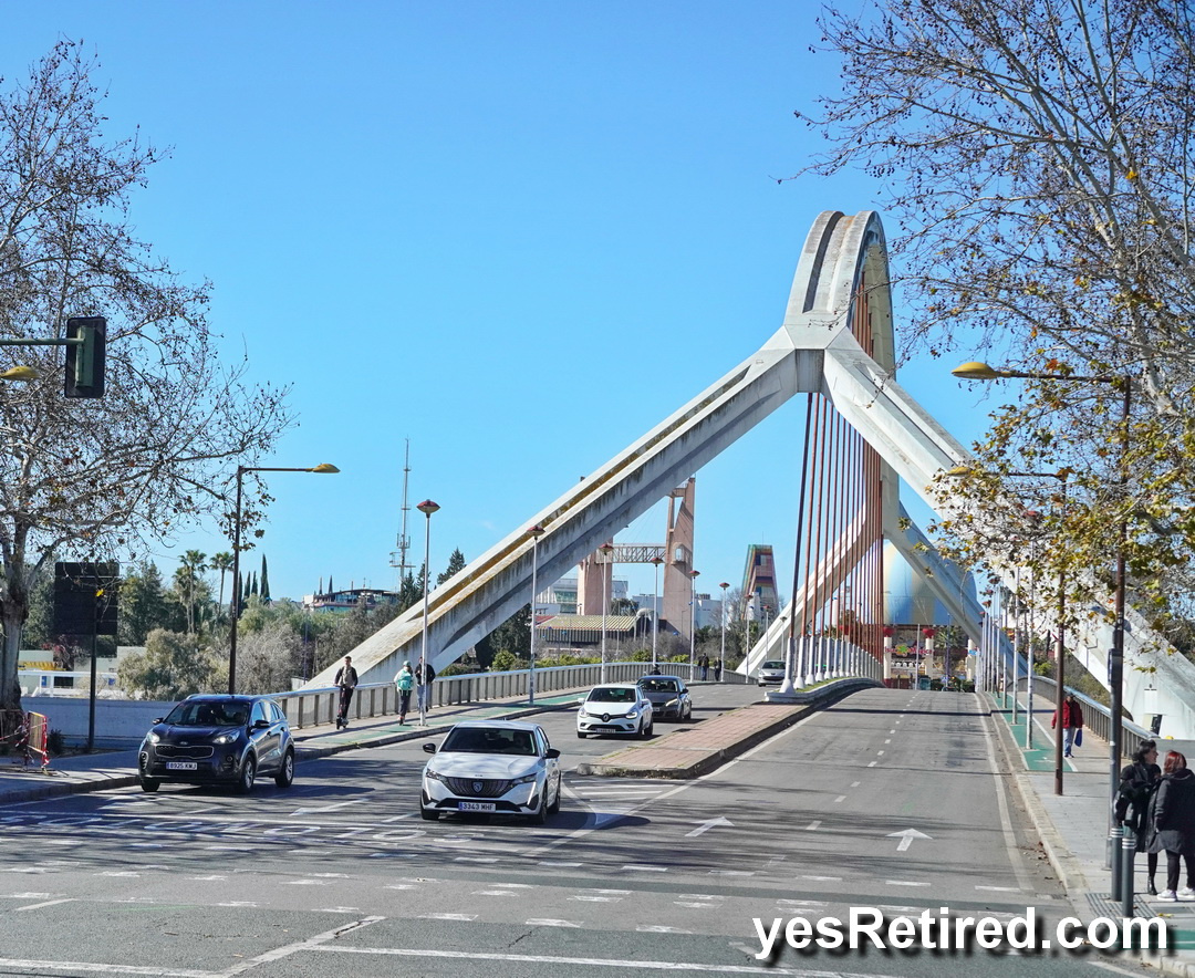 Two of the bridges use unique Engineering designs – especially the single Alamillo Bridge, cantilever spar cable-stayed bridge