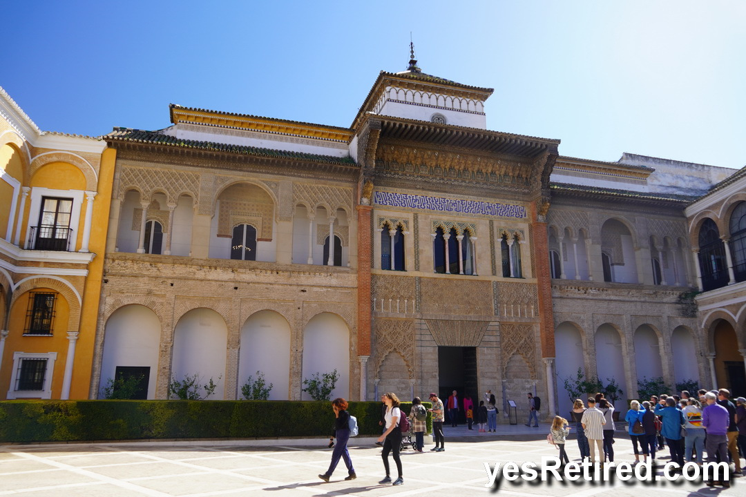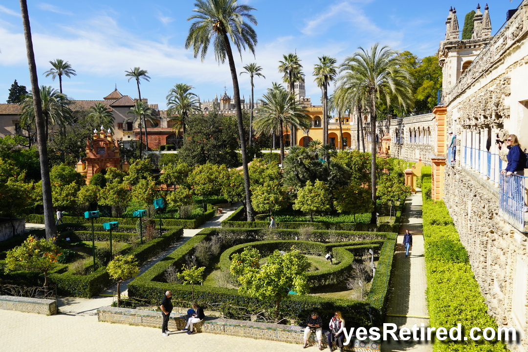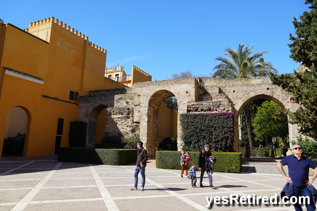 Royal Alcázar Palace, incorporates a blend of tastes from various Royal owners starting with the Romans, then Arabic Moors, and Spanish Christians. The buildings and gardens fill about 10 acres.